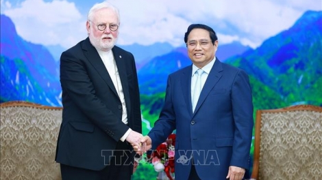 (VOVWORLD) - 4월 10일 오전 하노이에서 팜 티 타인 짜(Phạm Thị Thanh Trà) 베트남 내무부 장관은 베트남을 방문 중인 폴 리차드 갈라거(Paul Richard Gallagher) 교황청 외교장관을 접견했다.
