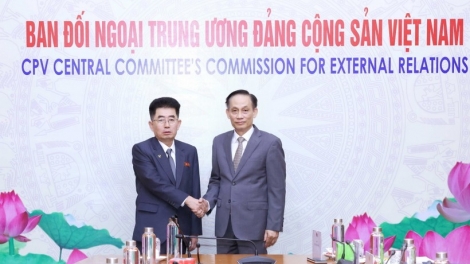 (VOVWORLD) - 3월 25일 오후 하노이에서 레 호아이 쭝(Lê Hoài Trung) 당 중앙 대외부장은 조선 노동당 대표단을 이끌고 3월 25일~28일 베트남을 방문 중인 조선 최고인민회의 외교위원장인 김성남 조선 노동당 국제부장과 회담을 가졌다.