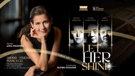 (VOVWORLD) - 오는 3월 22일 하노이시 호그엄(Hồ Gươm) 극장에서 열리는 ‘Let Her Shine’ 콘서트에서 베트남 선 심포니 오케스트라(SSO)는 세계적으로 유명한 피아노 연주자인 안나 폴론스키(Anna Polonsky)와 함께 콜라보 무대를 선사한다.