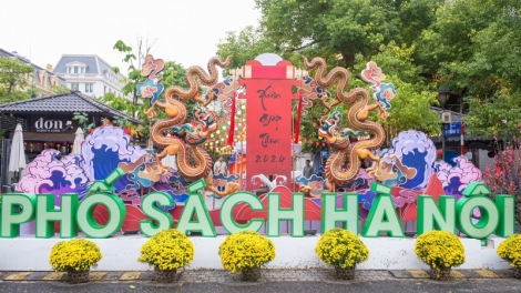 (VOVWORLD) - 2월 5일 오전 (계묘년 섣달 26일) 하노이 책거리(호안끼엠군, 므어이 진 탕 므어이 하이 거리)에서 호안끼엠군 인민위원회는 ‘2024년 갑진년 봄 책거리’ 개막식을 열었다.