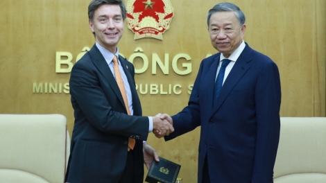(VOVWORLD) - 11월 16일 오후 하노이에서 공안부 장관인 또 럼(Tô Lâm) 대장은 신임 주베트남 유럽연합 줄리앙 게리에르(Julien Guerrier) 대사를 접견했다.