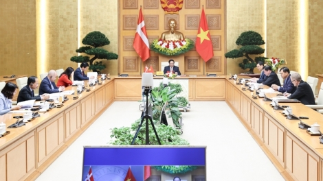 (VOVWORLD) - 11월 1일 정부 청사에서 팜 민 찐 총리는 메테 프레데릭센(Mette Frederiksen) 덴마크 총리와 온라인 회담을 가졌다.