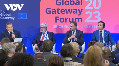 (VOVWORLD) - 우르줄라 폰 데어 라이엔(Ursula von der Leyen) 유럽연합 집행위원회 위원장의 초청을 받아 쩐 홍 하(Trần Hồng Hà) 부총리는 베트남 고위급 대표단을 이끌고 10월 25일~26일 벨기에서 열린 글로벌 게이트웨이(Global Gateway) 포럼에 참석했다.