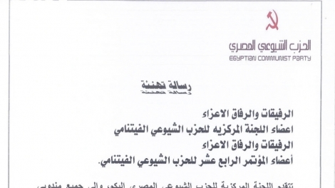 이집트 공산당, 베트남 공산당 제14차 대회에 축전 보내