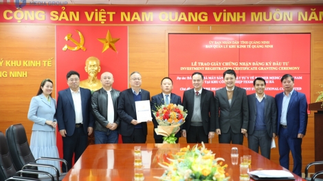 (VOVWORLD) - 꽝닌(Quảng Ninh)성 경제구역 관리위원회는 최근 하이하(Hải Hà) 항만 산업단지에서 위너 메디컬 베트남(Winner Medical Việt Nam) 의료기기 생산공장 사업에 대한 투자등록증 수여식을 개최했다. 해당 사업은 2026년 꽝닌성에서 처음으로 허가된 외국인직접투자(FDI) 사업이다.