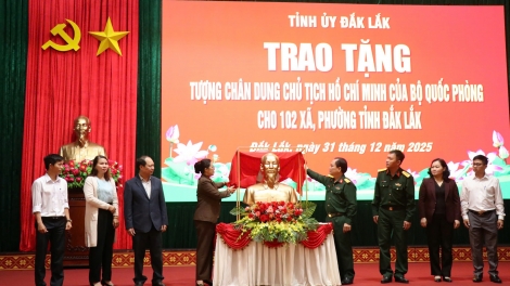 (VOVWORLD) - 12월 31일 오전, 닥락(Đắk Lắk)성 군사 지휘부와 닥락성 당 위원회 상임부는 성 전역 102개 동·면에 호찌민 주석 두상 전달식을 개최했다. 이는 베트남 국회 최초 총선거의 날 80주년과 제14차 당 전국 대표대회를 기념하는 의미 있는 활동이다.