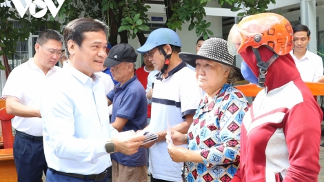 (VOVWORLD) - 12월 7일 오전, ‘베트남의 소리(VOV)’ 국영 라디오 방송국 실무단은 최근 폭풍우로 막대한 피해를 입은 지방 카인호아(Khánh Hòa)성 박냐짱(Bắc Nha Trang) 동에 거주하는 수재민들을 방문하여 격려하고 선물을 전달했다.