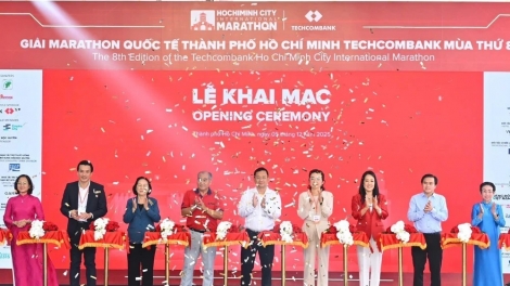 (VOVWORLD) - 12월 5일, 빈쩐(Bình Trân)동 마라톤 빌리치(Marathon Village)에서 호찌민시 관광청, 문화체육청 및 호찌민시 육상연맹이 제8회 호찌민시 테크콤뱅크 국제 마라톤 대회를 개막했다.