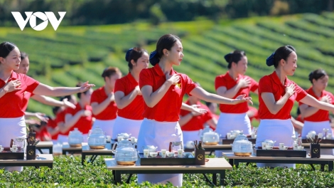 (VOVWORLD) - 12월 5일 저녁 럼동(Lâm Đồng)성에서 ‘2025년 국제 차 축제’가 공식 개막했다. 행사장에는 응우옌 티 낌 응언(Nguyễn Thị Kim Ngân) 전 국회의장, 부이 타인 선(Bùi Thanh Sơn) 부총리를 비롯해 중앙 부처와 각 지방 지도부가 참석했다. 또한 주베트남 40개국 대사, 유네스코 대표, 국제기구, 기업, 전문가, 럼동 주민과 관광객들이 대거 참여했다.