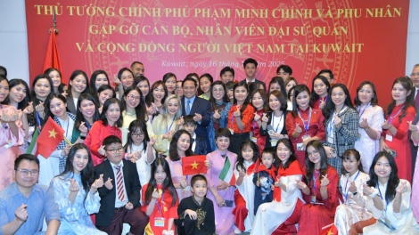 ‘쿠웨이트 공식 방문’ 팜 민 찐 총리, 현지 베트남인 공동체와 만나