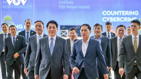 (VOVWORLD) - 10월 23일 오전 하노이 국립 컨벤션센터에서 르엉 끄엉 국가주석은 유엔 사이버 범죄 방지 협약(하노이 협약) 서명 개시식 준비 작업 및 최종 리허설을 점검했다.