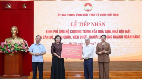 (VOVWORLD) - 7월 14일 오전 하노이에서 베트남 중앙 조국전선위원회는 은행계에 종사하는 간부 및 직원들이 기부한 ‘가건물 및 황폐한 집 철거’ 프로그램에 대한 후원금을 접수하는 기념 행사를 개최했다.