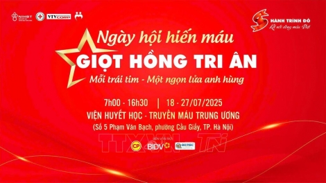 (VOVWORLD) - 오는 7월 18일~27일 베트남 중앙 혈액원은 ‘각자의 심장 - 영웅의 불꽃’이라는 메시지와 함께 헌혈 캠페인 ‘2025 감사의 붉은 핏방울’을 개최한다. 이 캠페인은 나눔의 정신과 공동체에 대한 책임감을 확산하고, 조국을 위해 헌신하고 희생한 선조 세대에 대한 감사를 표하기 위함이다.