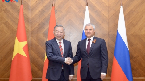 (VOVWORLD) - 또 럼 당 서기장의 제2차 세계대전 승전(전승절) 80주년 기념 열병식 참석차 러시아 공식 방문을 계기로 뱌체슬라프 볼로딘(Vyacheslav Volodin) 러시아 국가두마(하원) 의장은 10일(현지시간) 모스크바에서 또 럼 당 서기장과 회담하며 러시아 국가두마가 베트남과의 협력 관계 발전을 전폭 지지한다고 강조했다.