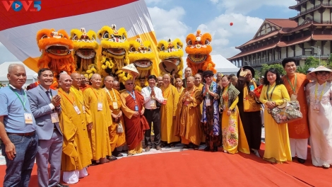 (VOVWORLD) - 5월 6일부터 8일까지 호찌민시에서 개최되는 2025년 유엔 베삭데이(Vesak Day)를 맞아 5월 5일 오전 베트남 불교 아카데미 레민쑤언(Lê Minh Xuân) 캠퍼스에서 ‘베트남 불교문화: 언어, 법복, 건축, 유산’을 주제로 한 전시회가 개막했다.