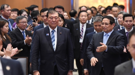 (VOVWORLD) - 4월 28일 오후 하노이 정부 청사에서 팜 민 찐 총리와 이시바 시게루(石破茂) 일본 총리는 전략적 기술, 첨단 기술, 녹색 전환, 반도체 등 분야에서의 협력에 관한 베트남‧일본 비즈니스 포럼에 참석했다.