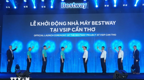 (VOVWORLD) - 4월 25일 오전 껀터 베트남-싱가포르 산업단지(VSIP)에서 VSIP 껀터 산업단지 유한책임회사와 Bestway International(베스트웨이인터내셔널) 주식회사는 총투자 자본 3억 달러에 해다하는 규모의 베스트웨이 공장 착공식을 개최했다.