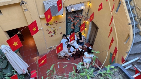 4월 30일 연휴 맞아 하노이 내 여러 카페 금성홍기로 가득•• 새로운 모습으로 탈바꿈