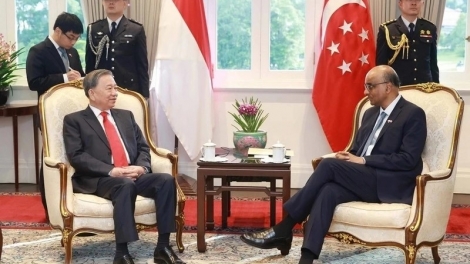 (VOVWORLD) - 싱가포르 공식 방문의 일환으로 3월 12일 오후 또 럼 당 서기장은 타르만 샨무가라트남(Tharman Shanmugaratnam) 싱가포르 대통령과 회견을 가졌다.