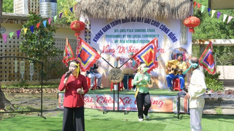 (VOVWORLD) - 최근 꽝남(Quảng Nam)성 주이쑤옌(Duy Xuyên)현 미선(Mỹ Sơn) 문화유산관리부는 미선 유적지 관광객을 위한 바이쪼이 공연팀을 조직했다. 이는 시범 운영 단계를 거쳐 미선 유적지의 상설 공연으로 자리 잡아 관광업에 종사하는 지역 주민들이 생계에 기여할 것으로 기대된다.
