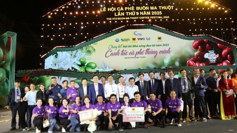 (VOVWORLD) - 2025년 제9차 부온마투옷 커피 축제의 일환으로 3월 11일 저녁 닥락성 뭉므어이탕바(3월 10일) 광장에서 2025년 커피 생산자 경연 대회가 ‘지능형 커피 경작법’이라는 주제로 개최되었다.