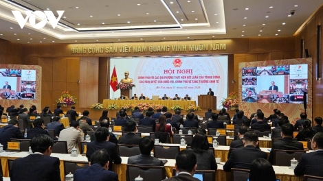 (VOVWORLD) - 2월 21일 오전 하노이에서 팜 민 찐 총리는 경제 성장에 관한 당 중앙 집행 위원회 결론, 국회와 정부의 결의 이행에 대한 정부와 각 지방정부 간의 회의를 주재했다. 해당 회의는 베트남 전국 63개 성시를 온라인으로 연결하여 개최되었다.