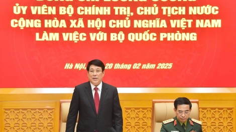 (VOVWORLD) - 2월 20일 하노이에서 르엉 끄엉 국가주석은 베트남 국방부와의 회의를 가졌다. 이날 회의는 2021~2030년 단계와 향후 베트남 인민군 조직에 관한 정치국의 제5호 결의(05-NQ/TW)를 이행 결과를 평가하기 위해 이루어졌다. 이 자리에서 르엉 끄엉 국가주석은 군에 대한 당의 직접적이고 전면적인 지도를 보장해야 한다고 당부했다.