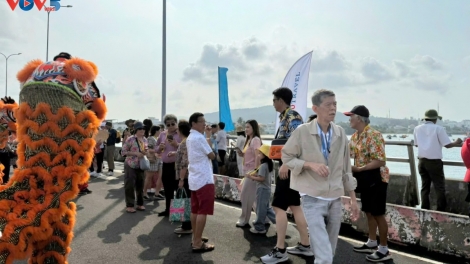 (VOVWORLD) - 2월 20일 오전, 이탈리아 국적의 5성급 크루즈선 코스타 세레나(Costa Serena)는 태국 관광객 3,000명을 포함해 약 3,300명의 관광객을 태우고 끼엔장성 푸꾸옥섬에 입항했다. 이 크루즈선은 2024년 2월 한 달 동안 푸꾸옥항에 입항한 세 번째 국제 유람선이다.