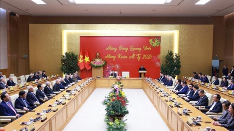 (VOVWORLD) - 베트남 공산당 창당 95주년(1930년 2월 3일~2025년 2월 3일) 및 2025년 을사년 전통 설을 맞아 2월 3일 하노이에서 베트남 정부는 ‘2025 을사년 봄맞이, 영광스러운 당 축하’ 환담 행사를 개최했다. 또 럼 당 서기장, 르엉 끄엉 국가주석, 팜 민 찐 총리, 쩐 타인 먼 국회의장과 여러 베트남 당, 국가 전임 지도자들이 행사에 참석했다.