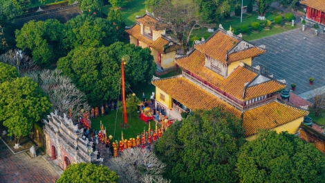 (VOVWORLD) - 1월 22일(갑진년 음력 12월 23일) 오전 고도 후에 유적지 보존센터 후에 왕궁에서 네우(nêu) 제례용 나무를 세우는 의례를 재현했다.