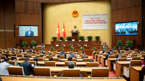 (VOVWORLD) - 12월 30일 오후 하노이 국회청사에서 국회 사무처는 2024년 활동 결산 및 2025년 임무 전개 회의를 개최했다. 쩐 타인 먼 국회의장이 회의에 참석하여 지도 내용을 발표했다.