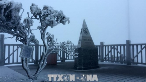 (VOVWORLD) - 12월 31일 오전 라오까이성 사파읍에서는 기온이 급강하하여 서리 현상이 일어났다. 올 겨울 초부터 지금까지 총 세 번째 서리 현상 발생으로 판시판 봉우리 정상은 서리로 하얖게 뒤덮여 있다.