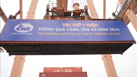 (VOVWORLD) - 지난 12월 26일, 하이퐁시 항만주식회사의 주요 하역 업체 중 하나인 떤부(Tân Vũ)항은 2024년 100만 번째 TEU를 처리했다. 따라서 떤부항은 4년 연속 100만 TEU를 달성하는 기록을 세웠다.