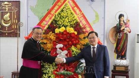 (VOVWORLD) - 12월 23일 박닌, 꽝빈, 빈롱 등 베트남 각 지방정부 지도자들이 2024년 성탄절과 2025년 새해를 맞아 가톨릭 성직자와 신자 공동체에 축하를 전달했다.
