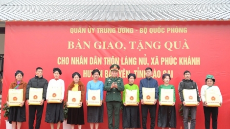 (VOVWORLD) - 12월 15일 오전 베트남 인민군 중앙 당 위원회, 국방부는 라오까이성 인민위원회와 협력해 바오옌(Bảo Yên)현 푹카인(Phúc Khánh)면 랑누(Làng Nủ) 마을 주민들에게 40채의 새로운 집을 인도하고 선물을 전달했다.