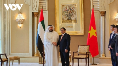 (VOVWORLD) - 아랍에미리트 공식 방문의 일환으로 10월 28일 오전(현지 시간) 아랍에미리트 수도 아부다비에서 팜 민 찐 총리는 압둘라 빈 토우크 알 마리(Abdulla Bin Touq Al Marri) 아랍에미리트 경제부 장관과 모하메드 빈 하산 알 수와이디(Mohammed Bin Hassan Al Suwaidi) 투자부 장관을 별도로 접견했다.