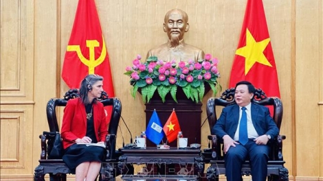 (VOVWORLD) - 10월 17일 유엔 본부 베트남 대표단 청사에서 주유엔 베트남대표단장 당 호앙 장 (Đặng Hoàng Giang) 대사는 폴린 타메시스 (Pauline Tamesis) 유엔 베트남 코디네이터와 만남을 가졌다.