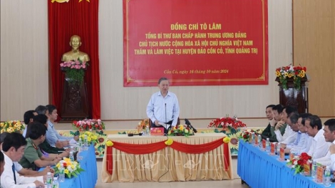 (VOVWORLD) - 10월 16일 오전 꽝찌성 방문의 일환으로 또 럼 당 서기장 겸 국가주석과 중앙 출장단은 꼰꼬(Cồn Cỏ)섬을 방문하고 이곳 주민들과 간부들의 생활환경을 점검했다.