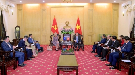 (VOVWORLD) - 10월 3일 오전 하노이에서 당 중앙 이론위원회 위원장인 호찌민 국가 정치 아카데미의 응우옌 쑤언 탕(Nguyễn Xuân Thắng) 총장은 마리암 셔먼(Mariam Sherman) 세계은행(WB) 베트남 국가 총괄을 접견했다.