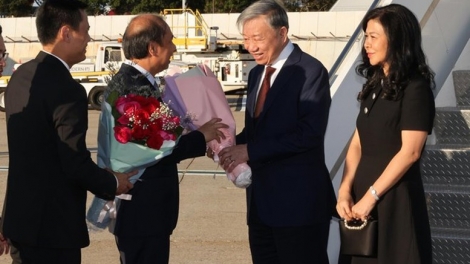 (VOVWORLD) - 9월 21일 (현지 시간) 또 럼 베트남 공산당 서기장·국가주석 내외와 베트남 고위급 대표단은 미 뉴욕 존 F. 케네디 국제공항에 도착해 제79회 유엔 총회 미래 정상 회의 일정을 시작했다.