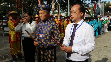 (VOVWORLD) - 9월 16일 오전 호찌민시 껀쩌(Cần Giờ)현 껀타인(Cần Thạnh) 지구 공원에서 2024년 ‘응잉옹 껀저’ 축제는 대형 국기 게양식으로 시작되었다. 올해 행사는 ‘응인옹 껀저’ 축제 111주년 및 국가 무형문화유산 등재 11주년을 맞아 진행되었다.