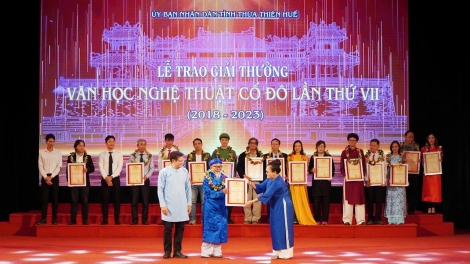 (VOVWORLD) - 9월 18일 트어티엔-후에성 인민위원회는 제7차 고도 후에 문학 예술상 시상식을 열어 57개의 우수 작품(금상7개, 은상18개, 동상 32개 포함)을 표창했다.