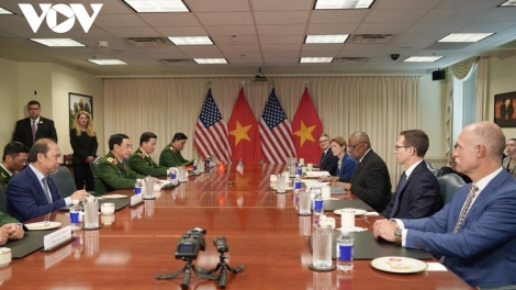 (VOVWORLD) - 9월 9일 워싱턴 D.C 미국 국방부 청사에서 미국 공식 방문하는 판 반 장(Phan Văn Giang) 국방부 장관을 위한 환영식이 개최됐다. 환영식 이후 판 반 장 장관과 로이드 오스틴(Lloyd Austin) 미국 국방부 장관 간의 회담이 진행됐다.