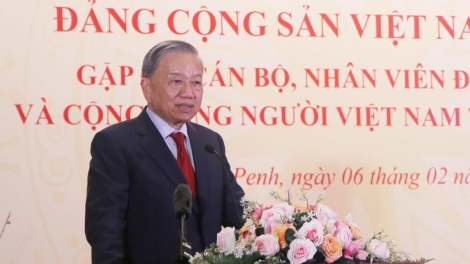 (VOVWORLD) - 캄보디아 국빈 방문의 일환으로 2월 6일 오후 수도 프놈펜에서 또 럼(Tô Lâm) 당 서기장은 주캄보디아 베트남 대사관 직원과 현지 거주 교민, 유학생 대표들과 친밀한 대화의 시간을 가졌다. 이날 간담회에는 쩐 타인 먼(Trần Thanh Mẫn) 국회의장도 배석했다.