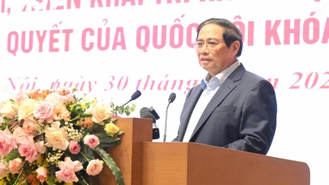 (VOVWORLD) - 7월 30일 오전 하노이에서 팜 민 찐 총리는 15기 국회 일부 법률‧결의안 이행 회의를 주재했다. 해당 회의는 하노이 정부청사와 베트남 전국 63개 중앙 직할 성시들을 연결해 온‧오프라인 결합 형식으로 개최됐다.