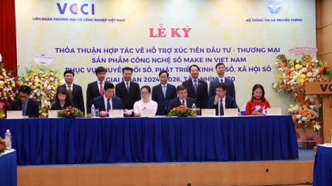 (VOVWORLD) - 7월 30일 오후 하노이에서 정보통신부와 베트남 상공회의소(VCCI)는 2030년 비전 2024~2026년 단계 디지털 전환과 디지털 경제·사회 개발을 위한 Make in Viet Nam 베트남산 디지털 상품 투자· 상업화 추진 지원에 대한 협력 문건을 체결했다.