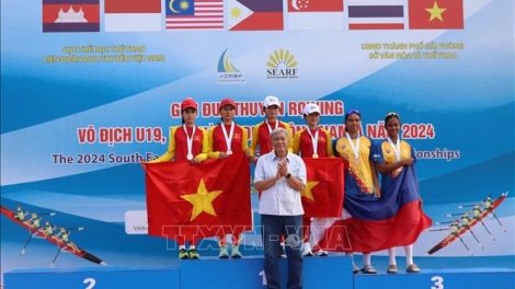 (VOVWORLD) - 2024년 동남아시아 청년‧U19‧U23‧프로 선수 조정 및 카누 경조 대회가 6월 30일에 성공리에 마무리됐고 베트남 홈팀이 최종 우승을 거두었다.