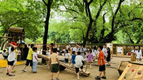 (VOVWORLD) - 6월 11일 국제 놀이의 날 및 베트남 아동을 위한 행동의 달을 맞아 최근에 문묘-국자감 문화과학활동센터는 베트남 주재 뉴질랜드 대사관, Think Playgrounds와 협력해 문묘-국자감 유적지 잠(Giám) 화원에서 타인 종(聖揀, Thánh Gióng) 놀이 공간을 개장했다.