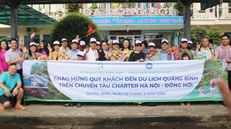 (VOVWORLD) - 6월 9일 꽝빈성 관광청은 유네스코 하노이 여행 클럽과 협력해 2024년 내 첫 전세 열차(관광객을 위한 렌탈 여행 열차)를 맞이했다.