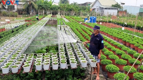 (VOVWORLD) - 동탑(Đồng Tháp)성 미퐁(Mỹ Phong)동에 위치한 미퐁 화훼마을은 과거 띠엔장(Tiền Giang)성 최대의 설꽃 재배지로, 수백 가구가 참여하는 전통 산업을 바탕으로 여러 지방에의 설꽃 시장에 꽃을 공급해 오고 있다. 최근 미퐁 화훼마을 농민들은 설꽃 재배와 관리에 한창 분주하다. 꽃이 설에 맞춰 가장 좋은 품질로 피어나도록 하기 위해 농민들은 꽃밭에서 먹고 자며 재배와 관리를 이어가고 있다.